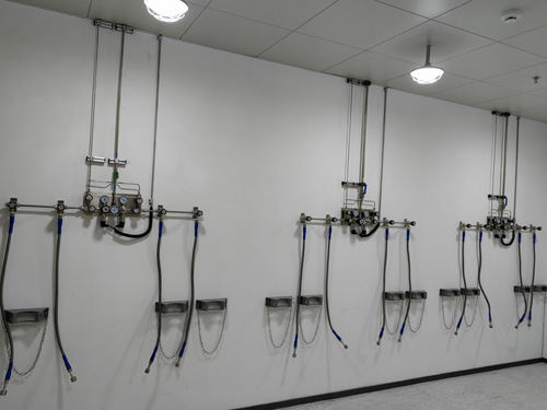 3.5N氫氣、氦氣、留線氣操作員線用到OD1/4”(6.35mm)的供水管路,支線用到OD1/4”(6.35mm)的供水管路。用焊接加工三通接頭拿出支路來對機械實施氣路。